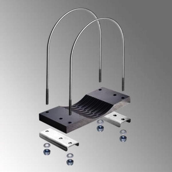 - 3-teilig, bestehend aus: 2x Rundbügel M10 inkl. U-Scheibe + Mutter, 1 x Rohraufnahmeplatte, 2 x U-Klemmprofil