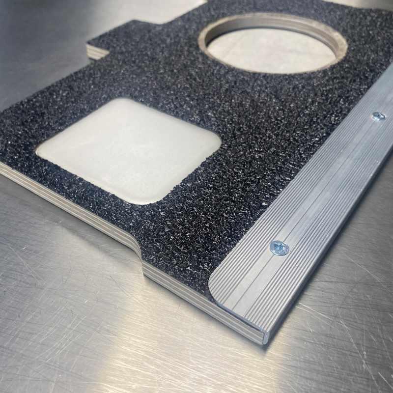 - Für Fahrzeuge mit Schiebetür rechts u. Frontantrieb - Extrem robuste Antirutsch-Spezialbeschichtung - Bodenplatte mehrteilig, mit Wechselfalz - Mit Ausschnitten für die Zurrpunkte - Mit Aluminium-Einstiegsleisten an den Türen - Lieferung komplett inkl. Montagematerial