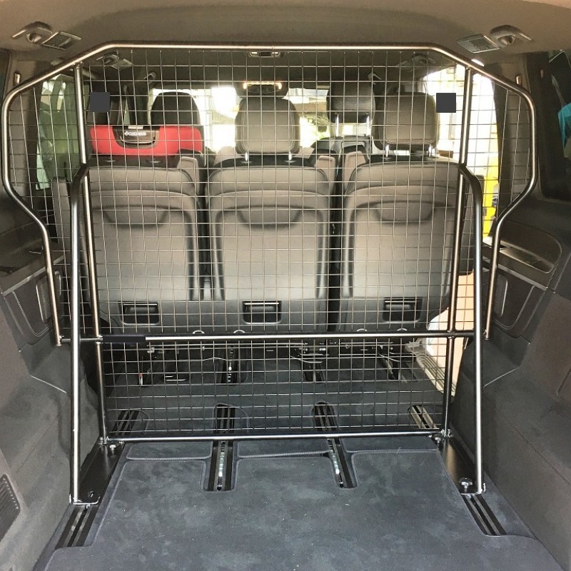 Das Trenngitter wird in der Schiene montiert, mit Abstützung nach hinten.